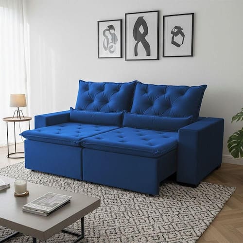 ATENÇÃO: IMAGENS MERAMENTE ILUSTRATIVAS. AS CORES PODEM VARIAR DE ACORDO COM A TELA, MONITOR, ILUMINAÇÃO DO AMBIENTE OU PERCEPÇÃO VISUAL.Sofà RetrÃtil Design 150m Tecido Suede Estrutura ReforÃada RetrÃtil ReclinÃvel 2 MÃdulos MilÃo Azul