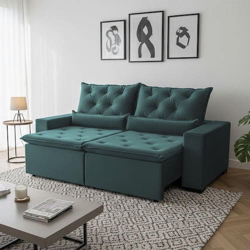 ATENÇÃO: IMAGENS MERAMENTE ILUSTRATIVAS. AS CORES PODEM VARIAR DE ACORDO COM A TELA, MONITOR, ILUMINAÇÃO DO AMBIENTE OU PERCEPÇÃO VISUAL.Sofà RetrÃtil Design Verde 150m Estrutura ReforÃada ReclinÃvel e 2 MÃdulos MilÃo Verde