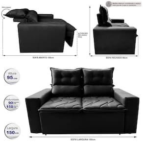 Profundidade aberto: 150cm