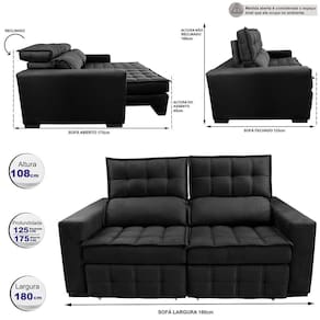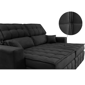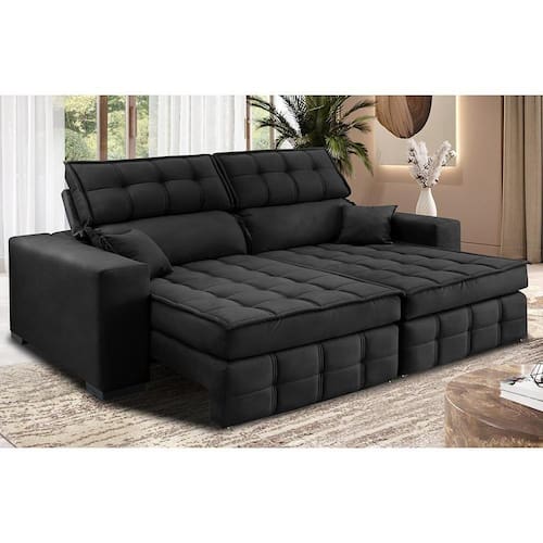 Sofá Retrátil e Reclinável 1,80m Molas Ensacadas e Costura Tripla Cama inBox Nobre. Suede Velusoft - Preto