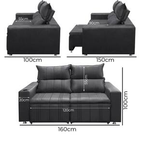 Dimensoes do Produto: Largura: 160 cm Altura: 100 cm. Profundidade: 100 cm. Altura do chao ao assento: 45 cm Largura do Braco: 20 cm Medidas Internas do Assento: 140 x 55 cm Peso: 45 KG