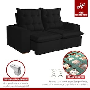O Sofá Retrátil e Reclinável 2 Lugares Veneza da Kasacomigo Estofados é a combinação perfeita de funcionalidade e elegância. Seu design sofisticado complementa qualquer ambiente, enquanto o sistema retrátil e reclinável oferece flexibilidade para ajustar o assento conforme a sua necessidade de conforto. Confeccionado com estofado de alta qualidade, assegura durabilidade e um toque suave. Transforme sua sala de estar em um espaço acolhedor e requintado, proporcionando momentos de relaxamento e bem-estar incomparáveis. Produto Montado: Sim Acompanha Almofadas extras: Não Almofada do assento: Fixa Almofada do encosto: Fixa Altura do assento até o chão: 50.0000 Altura do Encosto: 55 cm Altura dos Pés: 2,5 cm Ambiente Principal: Sala de Estar codigo_ean: 7909903718117 Complexidade da Montagem: Baixa: pode ser montado por uma pessoa sozinha Cor: Preto Cor do Produto: Preto Densidade do Assento: D-26 Enchimento do Assento: Espuma Enchimento do Encosto: Fibra Siliconada Firmeza do Assento: Firme Itens Inclusos: 1 Sofá e manual de instrução Linha ou Coleção: Veneza Material dos Pés: Eucalipto Necessita Montagem: Sim Peso: 58,5 kg Pet Friendly: Não Possui Percintas Elásticas: Sim Possui Pés: 08 Possui Rodízio: Sim Recomendações de Uso, Manutenção e Limpeza: Limpeza com pano macio e levemente umedecido. Não utilizar solventes a base e de inflamáveis. Não utilizar produtos abrasivos. Revestimento do Braço: Veludo Rodízio com Trava: Não Sistema de Montagem: Encaixe. Suporta Até (kg): 120 kg Tecido Predominante: Veludo Tipo de Encosto: Regulável Marca: Kasacomigo Estofados