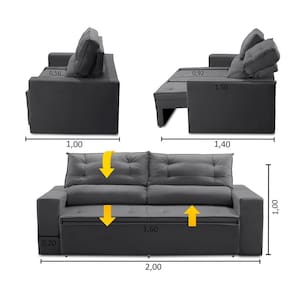 Assento:Feito com espuma D-28 com percintas elásticas de 5mm e Molas, o assento é retrátil que permite você utilizar o sofá com as pernas esticadas e ter todo o conforto que ele possa te proporcionar.