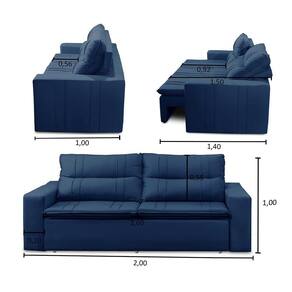 Sofá Retrátil e Reclinável 2 lugares com Molas 2,00m Eloa Suede Azul Madelina - Azul Marinho