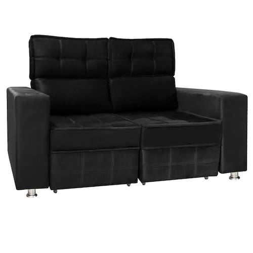 Sofá Retrátil E Reclinável 2 Lugares Londres 1.60cm C/molas - Veludo Preto