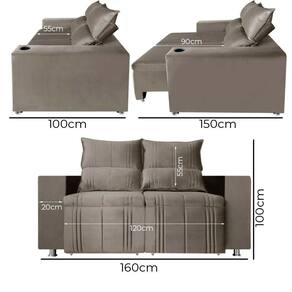 Dimensoes do Produto: Largura: 160 cm Altura: 100 cm. Profundidade: 100 cm. Altura do chao ao assento: 45 cm Largura do Braco: 20 cm Medidas Internas do Assento: 140 x 55 cm Peso: 45 KG