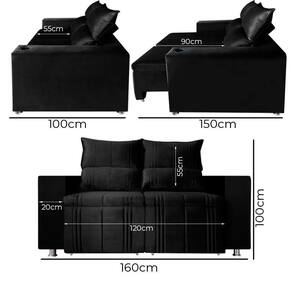Dimensões do Produto: Largura: 160 cm Altura: 100 cm. Profundidade: 100 cm. Altura do chão ao assento: 45 cm Largura do Braço: 20 cm Medidas Internas do Assento: 140 x 55 cm Medidas Internas do Assento Aberto:140 x 90 cm Peso: 45 kg