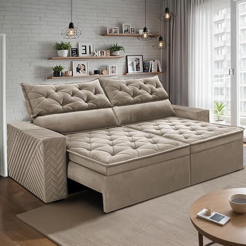 Sofá Retrátil E Reclinável 2,00m Essence Velusoft Bege Cama Inbox