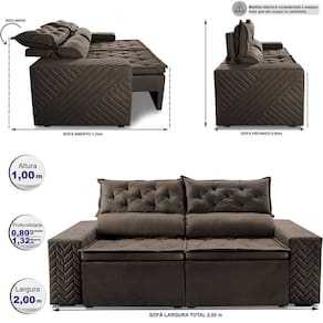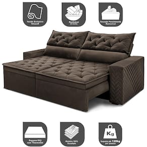 Sofá Retrátil e Reclinável 2,00m Essence. Velusoft Cama inBox - Marrom