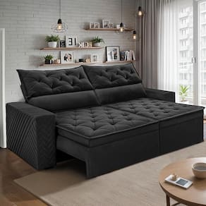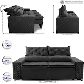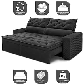 Sofá Retrátil e Reclinável 2,00m Essence. Velusoft Cama inBox - Preto