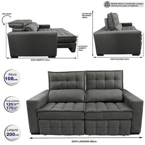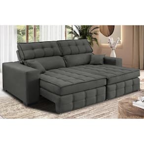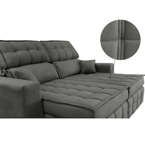 Sofá Retrátil e Reclinável 2,00m Molas Ensacadas e Costura Tripla Cama inBox Nobre. Suede Velusoft - Cinza