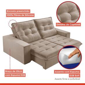 Sofá Retrátil e Reclinável 210cm M166 Café com Leite - Bege