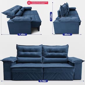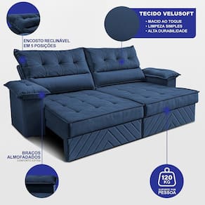 Sofá Retrátil E Reclinável 2,10m Com Molas E Espuma D33 Thunder. Velusoft Cama Inbox Azul