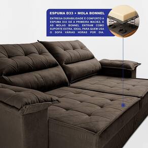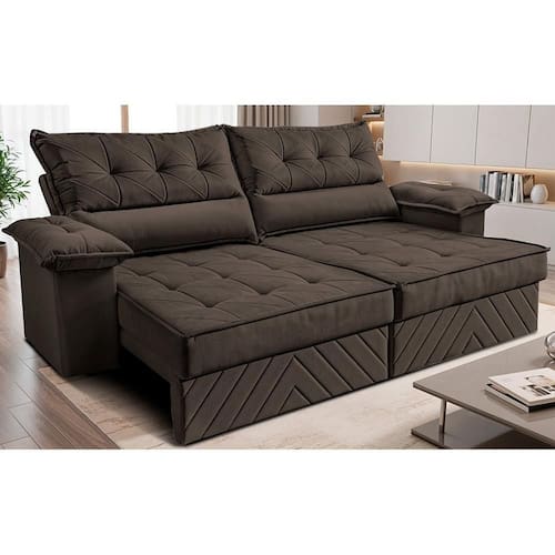 Sofá Retrátil E Reclinável 2,10m Com Molas E Espuma D33 Thunder. Velusoft Cama Inbox Café