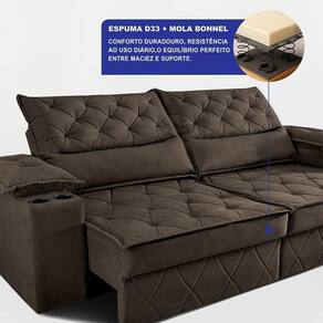 Sofá Retrátil e Reclinável 2,10m com Molas Bonnel e Espuma D33 Cosmos Velusoft com Porta Copos Cama inBox