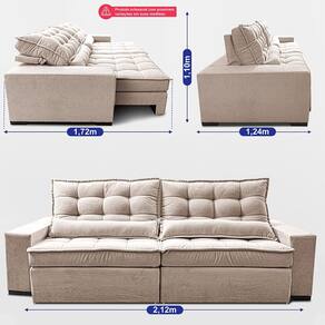 Sofá Retrátil e Reclinável 2,12m Molas Ensacadas Belle Boucle Cama inBox