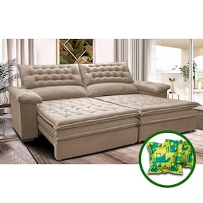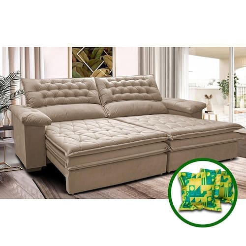 Sofá Retrátil E Reclinável 2,12m Molas Ensacadas Cama Inbox Alemanha De Viscoelástico Velusoft Bege