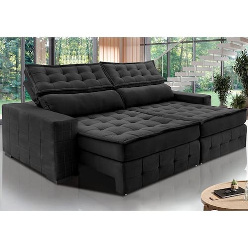 Sofá Retrátil E Reclinável 2,15m Cama Inbox Big Puffer Com Softgel D40 Velupluma Preto