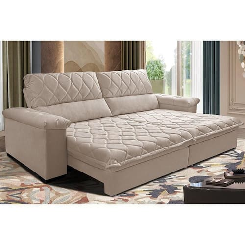 Sofá Retrátil E Reclinável 2,15m Molas Ensacadas Cama Inbox Big Home Com Bordado 3d Velusoft Bege