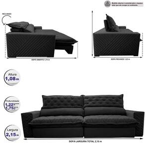Sofá Retrátil e Reclinável 2,15m Molas Ensacadas Cama inBox Spazus. com Bordado 3D Velusoft - Preto