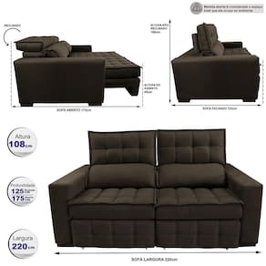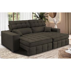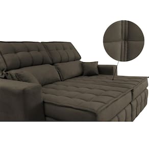 Sofá Retrátil e Reclinável 2,20m Molas Ensacadas e Costura Tripla Cama inBox Nobre. Suede Velusoft - Marrom