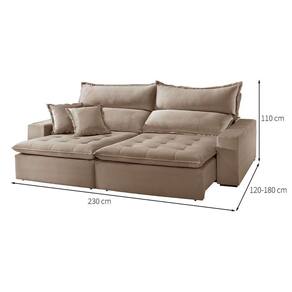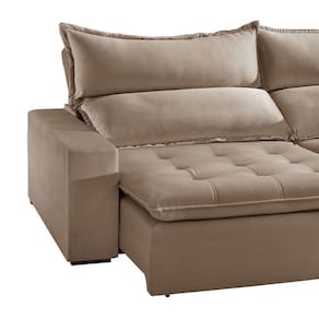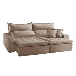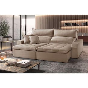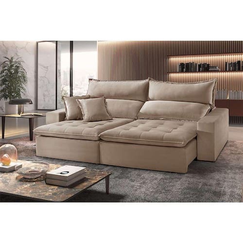 Características: Acompanha Almofadas extras: 02Almofada do assento: FixaAlmofada do encosto: FixaAltura do assento até o chão: 45Altura do Encosto: 65Altura dos Pés: 5Ambiente Principal: Sala de EstarComplexidade da Montagem: Baixa: pode ser montado por uma pessoa sozinhaCor: BegeCor do Produto: BegeDensidade do Assento: D-28Densidade do Encosto: Camadas de Densidades DiferentesEnchimento do Assento: Hyper SoftEnchimento do Encosto: Fibra SiliconadaEstilo de Braço: Braços QuadradosFirmeza do Assento: MédioInformações Complementares: Pillowtop de 12 cm no assento e almofadas decorativas acompanham o produto. Encosto com design bipartido.Itens Inclusos: 01 Sofá Retrátil e Reclinável BellaMaterial dos Pés: MadeiraMontagem Flex: Não aplicávelNecessita Montagem: NãoOrigem do Produto: NacionalPeso: 55Pet Friendly: NãoPossui Percintas Elásticas: SimPossui Pés: 08Possui Rodízio: SimProfundidade Quando Estendido: 180Recomendações de Uso, Manutenção e Limpeza: Utilizar pano levemente umedecido em água. Não expor diretamente à luz solar e não utilizar produtos abrasivos.Revestimento do Braço: VeludoRodízio com Trava: NãoSistema de Montagem: EncaixeSuporta Até (kg): 140Tecido Predominante: VeludoTipo de Encosto: RegulávelTipo de Mola: Molas Bonnel
