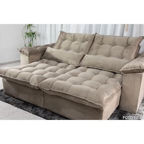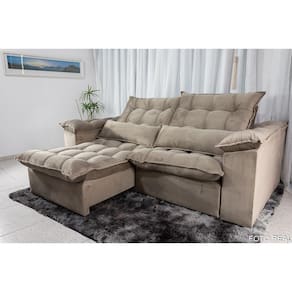 Sofá Retrátil e Reclinável 2,30m em Tecido Veludo com Pillow nos Braços e Assentos - Com Molas Ensacadas Bonel/D33