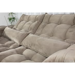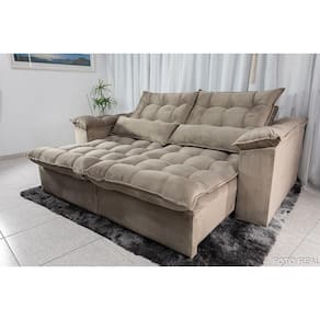Sofá Retrátil e Reclinável 2,30m em Tecido Veludo com Pillow nos Braços e Assentos - Com Molas Ensacadas Bonel/D33 - Bege