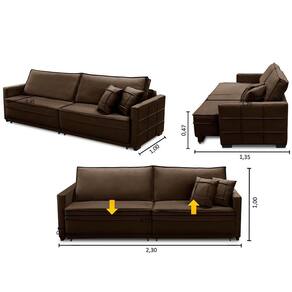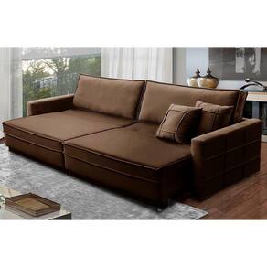 Sofá Retrátil e Reclinável 2,30m Karina Veludo Marrom Madelina Decor