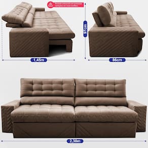 Sofá Retrátil e Reclinável 2,30m de Molas Ensacadas Max Spring Velusoft Cama inBox Conforto premium, preço acessível e design único que transforma sua sala. O Sofá Retrátil e Reclinável Max Spring é a escolha perfeita para quem busca conforto absoluto e durabilidade premium. Combinando a espuma de alta qualidade com a sustentação das Molas Ensacadas e Molas Bonnel, este modelo oferece uma experiência única de relaxamento. Cada assento e encosto se adapta ao corpo de forma inteligente, proporcionando apoio anatômico e eliminando a sensação de afundamento ou desconforto. Invista nessas tecnologias do Sofá Retrátil e Reclinável Max Spring: ConfortTech: Tripla Camada de Conforto Inteligente O Sofá Max Spring conta com o sistema exclusivo ConfortTech, que combina Molas Ensacadas, Espuma D33 com Tecnologia ThermoGel e Fibra Siliconada. Essa união garante sustentação anatômica, frescor constante e maciez duradoura. Um sofá pensado para acompanhar sua rotina e transformar cada momento em descanso de alto padrão. SoftBlend 3D: Design que impressiona O acabamento exclusivo SoftBlend 3D traz sofisticação incomparável ao sofá. Seus bordados pantográficos em alto-relevo, aliados ao matelassê de manta de fibra siliconada compactada com espuma soft, criam um visual elegante e aconchegante. Cada detalhe foi pensado para adicionar personalidade e transformar sua sala em um ambiente moderno, confortável e cheio de charme. Estrutura completa e duradoura - Assento Retrátil: Espuma D33 com ThermoGel, molas ensacadas e bonnel, fibra siliconada e percintas Extra Support. Combinação que garante conforto imediato, molejo ideal e resistência superior. - Encosto Reclinável: Reclinável em 5 posições, com almofadas parcialmente removíveis em 80% fibra siliconada e 20% flocos de espuma, oferecendo suporte ergonômico e maciez envolvente. - Braços: Madeira maciça de eucalipto, 25 cm de largura e acabamento SoftBlend 3D para unir resistência e sofisticação. - Estrutura: Madeira maciça de reflorestamento com grampos galvanizados, reforço que garante firmeza e longa durabilidade. - Tecido: Exclusivo Suede Velusoft, toque macio e aconchegante, perfeito para qualquer decoração. Dimensões do Sofá Retrátil Montado Altura: 0,97m Profundidade fechado: 0,86m Profundidade aberto: 1,45m Largura: 2,30m Medidas disponíveis: 2,30m, 2,50m, 2,70m e 3,00m Cores disponíveis: Azul, Bege, Café, Castor, Cinza, Petróleo, Preto, Vermelho e Vinho Por que escolher o Sofá Retrátil e Reclinável Max Spring? - Não sinta a estrutura com a nossa exclusiva tecnologia ConfortTech que combina espuma D33 com ThermoGel, molas ensacadas e molas bonnel para oferecer conforto absoluto. - Assento Retrátil confortável por muito mais tempo: não afunda, mantém a qualidade e o suporte mesmo após anos de uso. - Conforto ergonômico de verdade: encosto reclinável em 5 posições mais almofadas de fibra siliconada que se moldam ao corpo. - Feito para durar: estrutura em madeira maciça de reflorestamento, resistente ao uso do dia a dia. - Beleza que transforma sua sala: acabamento exclusivo em SoftBlend 3D com tecido Velusoft, união perfeita de sofisticação e aconchego. - Custo-benefício acessível: um sofá retrátil e reclinável com tecnologias de modelos premium por um preço direto de fábrica. Informações extras - Produto já vai montado, não acompanha rodízios. - Peso suportado: até 120kg por pessoa - Garantia: 6 meses (3 meses de garantia legal + 3 meses de garantia da Cama inBox) - Entra facilmente em portas, corredores e elevadores acima de 65 cm de largura Informações importantes - As tonalidades dos tecidos podem variar de acordo com o lote de produção e também pela resolução da tela do seu monitor ou celular. - Por se tratar de um produto artesanal, podem ocorrer pequenas variações nas medidas de largura, altura ou profundidade. - Objetos de decoração utilizados nas fotos não acompanham o produto. - Nossos produtos seguem um padrão de fabricação, não sendo possível realizar personalizações. - A Cama inBox realiza a entrega até a porta de entrada (casas) ou portaria (prédios). A partir desse ponto, o transporte até o local de uso é de responsabilidade do cliente. Importante: as transportadoras não sobem escadas ou elevadores. Caso ocorram danos durante esse deslocamento interno, a responsabilidade será do cliente. Garanta agora o Sofá Retrátil e Reclinável de Molas Ensacadas Max Spring e descubra que é possível ter o conforto de um sofá premium com preço de fábrica.