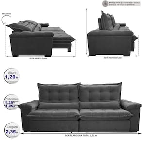 Sofá Retrátil e Reclinável 2,35m Cama inBox Big Fresh. com SoftGel D40 Velupluma - Cinza