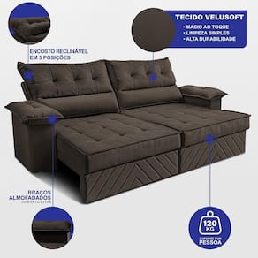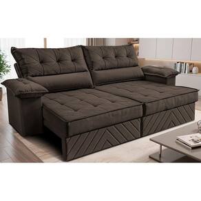 Sofá Retrátil E Reclinável 2,40m Com Molas E Espuma D33 Thunder. Velusoft Cama Inbox Café