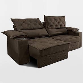 Sofá Retrátil E Reclinável 2,40m Com Porta Copos E Molas Cosmos. Velusoft Cama Inbox Café
