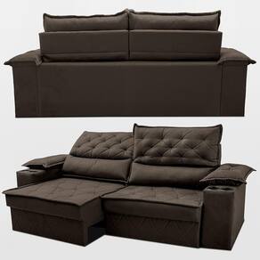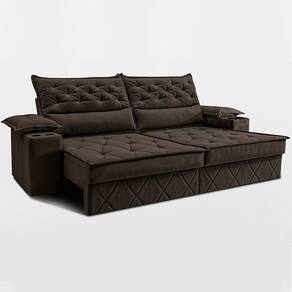 Sofá Retrátil e Reclinável 2,40m com Molas Bonnel e Espuma D33 Cosmos Velusoft com Porta Copos Cama inBox