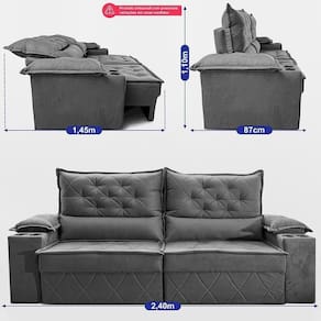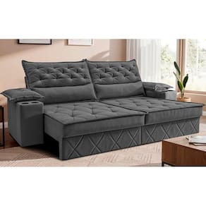 Sofá Retrátil e Reclinável 2,40m com Molas Bonnel e Espuma D33 Cosmos Velusoft com Porta Copos Cama inBox