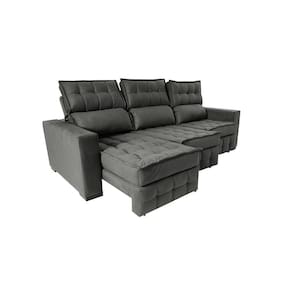 Sofá Retrátil E Reclinável 2,50m Molas Ensacadas E Costura Tripla Cama Inbox Nobre Suede Cinza