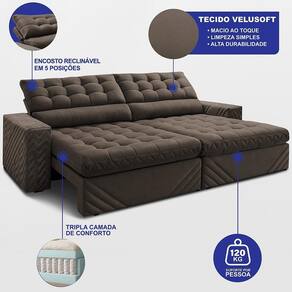 Sofá Retrátil E Reclinável 2,50m Molas Ensacadas Max Spring. Velusoft Cama Inbox Café