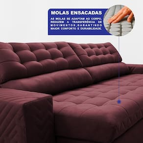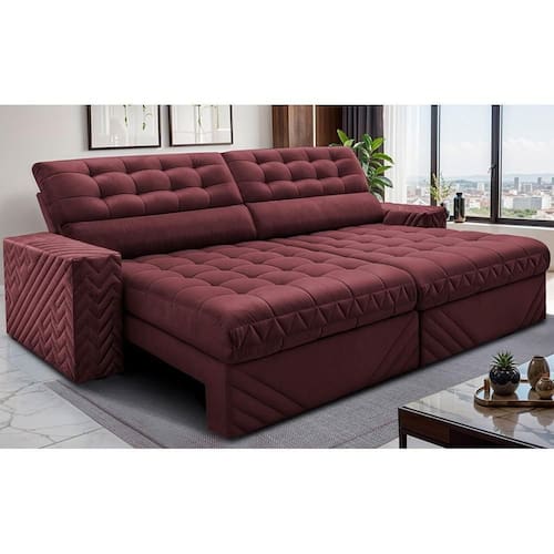 Sofá Retrátil E Reclinável 2,50m Molas Ensacadas Max Spring. Velusoft Cama Inbox Vinho