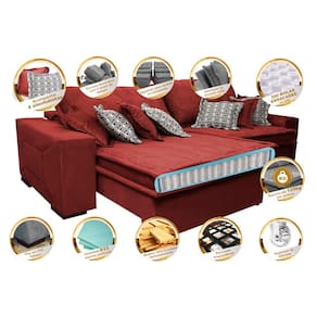Sofá Retrátil e Reclinável 2,52m com Molas Ensacadas Cama Inbox Supreme Tecido Suede Velusoft Vermelho