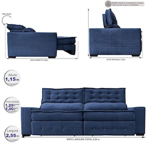 Este modelo pertence a Linha Exclusiva BIG, onde os sofás são desenvolvidos com encostos Mega Gigantes e assentos maiores em relação ao mercado.