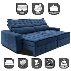 Apresentamos o incrível Sofá Retrátil e Reclinável Big Puffer, da exclusiva linha BIG! Com encostos mega gigantes e assentos espaçosos, este sofá foi projetado para proporcionar charme, elegância e um conforto incomparável à sua sala de estar. Sua estrutura interna resistente garante a estabilidade necessária para um móvel de alta qualidade, enquanto o enchimento em espuma SoftGel D40, Dupla Camada de Manta Siliconada e Percintas Extra Suport oferecem o suporte necessário para o máximo conforto. Com o Sofá Retrátil e Reclinável Big Puffer, você pode desfrutar para maratonar séries ou relaxar nos finais de semana com as pessoas que ama. Imagine-se em um colchão luxuoso, diretamente na sua própria sala de estar! Não deixe de adquirir esse modelo exclusivo e elevar o nível de conforto e sofisticação da sua casa. Venha conferir o Sofá Retrátil e Reclinável Big Puffer e descubra o verdadeiro significado de relaxamento!