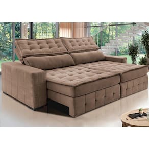 Sofá Retrátil e Reclinável 2,55m Cama inBox Big Puffer. com SoftGel D40 Velupluma - Palha