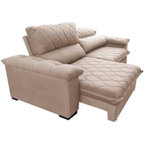 Sofá Retrátil E Reclinável 2,55m Molas Ensacadas Cama Inbox Big Home Com Bordado 3d Velusoft Bege