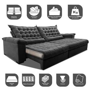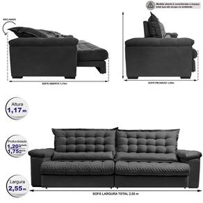 Sofá Retrátil e Reclinável 2,55m Molas Ensacadas Cama inBox Big Space. com Bordado 3D Velusoft - Cinza