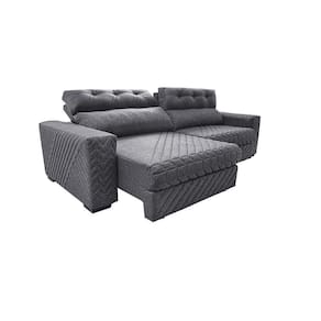 Sofá Retrátil E Reclinável 2,55m Molas Ensacadas Cama Inbox Style Thermo Gel Linho Cinza Escuro