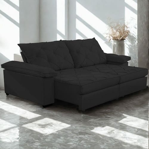 Sofá Retrátil E Reclinável 2,60m Clara | Conforto Premium E Design Elegante | Lansof Cores Preto