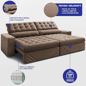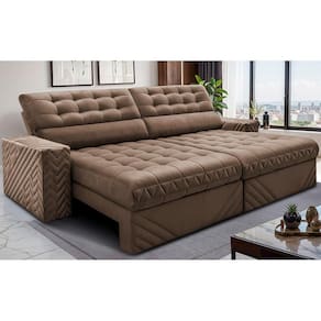 Sofá Retrátil e Reclinável 2,70m Molas Ensacadas Max Spring. Velusoft Cama inBox