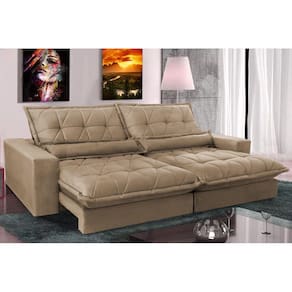 Sofa Retrátil e Reclinável 2,72m com Molas Ensacadas Cama inBox Soft Tecido Suede Castor - Palha