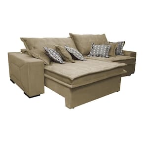 Sofá Retrátil E Reclinável 2,72m Com Molas Ensacadas Cama Inbox Supreme Tecido Suede Velusoft Bege
