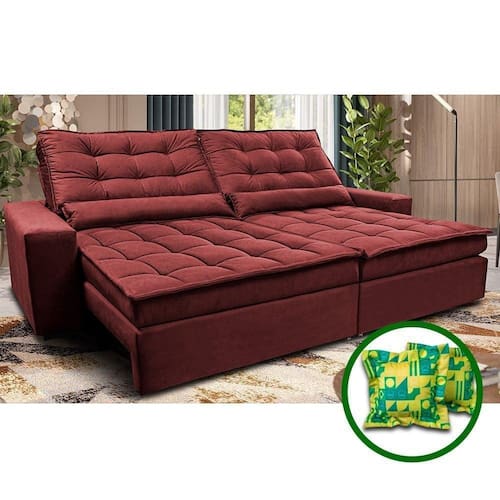 Sofá Retrátil E Reclinável 2,72m Molas Ensacadas Cama Inbox Catar Velusoft Vermelho
